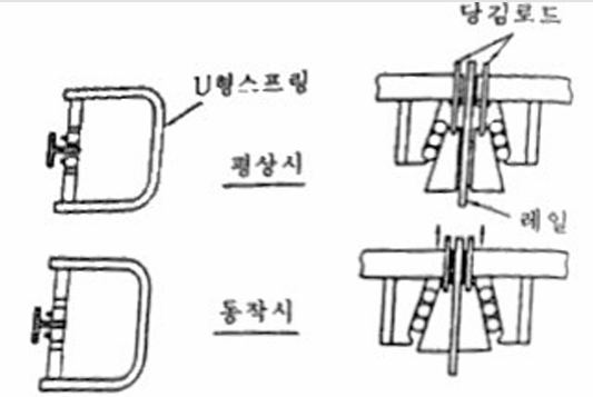 | 즉시작동형 | - | 레일을 감싸고 있는 블록과 레일사이에 롤러를 물려서 카를 정지시키는 구조 (롤러식이라고도 함) | ![]() |